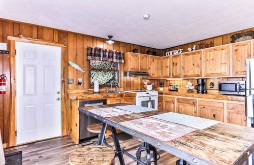 This home has been perfectly appointed to provide all the conveniences of home in a pristine lakefront setting. With floor to ceiling windows facing the lake, the kitchen and living areas at Sunset Cove are bathed in warm, natural light. The kitchen features newer appliances and a charming pub table for entertaining your family and friends. Both bedrooms are conveniently located off of the great room, the master has one queen bed with the second bedroom providing a twin over twin bunkbed and a queen bed.