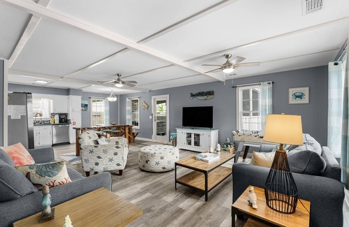 Parking is a breeze with free onsite parking for up to 6 cars, plus room for a boat or golf cart. Conveniently located on the quieter east end of the beach, you will be just 3 blocks from the beach access. To make your beach outings stress free, we even provide a selection of beach gear, including a wagon to easily transport everything you need.