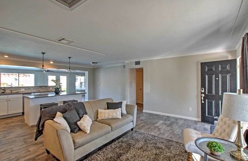 Experience the joys of Phoenix at this tastefully furnished 4-bedroom, 3-bath vacation rental nestled just over 4 miles from Downtown Scottsdale! This updated retreat offers modern furnishings, a high-end kitchen, a media room, as well as a backyard entertainment space with a pool, dining space, putting course, and mountain views. Whether you're here to explore the Sonoran Desert trails, catch a Spring Training game with the kids, or visit Downtown Phoenix, this is the perfect family home base!