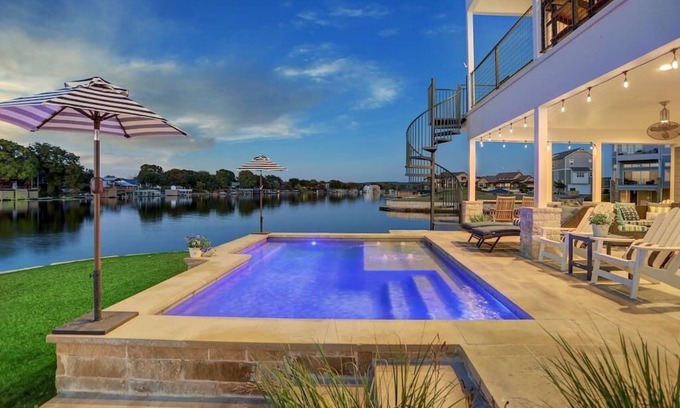 • 270 degrees lake views, Hill Country views, watch boats pass by from heated pool near waters edge.