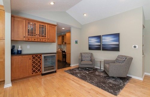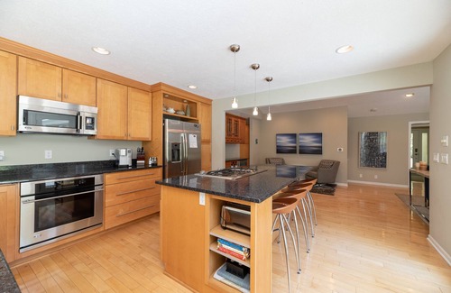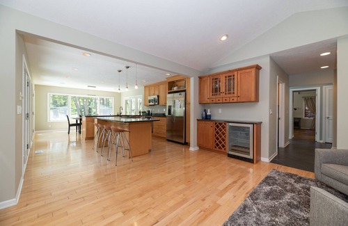 Secluded in a quiet lakeshore neighborhood, find our five-star vacation home. Boasts high-end finishes in a california-cool open design with 4 bedrooms. This peaceful backyard resort features a heated diving pool, two sun decks, a grilling station, dining zone, firepit, and a screened porch. Enjoy sunny southern views of the retired Westshore golf course, pond, nature trails, and wildlife. Prime Westshore neighborhood location: Closest pool house rental to Douglas Beach! Bike, walk, or run the 4 mile Lakeshore Drive loop with lake vistas and millionaire summer homes. Professionally cleaned and managed, ready for summer's new families, friends, and returning guests.