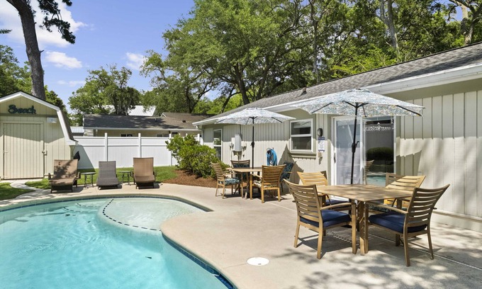 Mimosa is a secluded home away from any large crowds that typical resorts may bring. Rest assured, this home is deep cleaned after every visit! This is a private home with a large driveway for parking, a private pool (heating of pool can be requested for an additional $400/per stay up to 7 days during the winter/fall months--the pool water stays warm during the spring/summer months at HHI), a fenced in backyard, and all the amenities including a washer and dryer! There is a barbecue grill in the back yard in case you want to grill some burgers, steaks, or locally caught seafood during your stay.