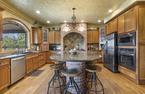 The LAP OF LUXURY LODGE is a sprawling 9 bedroom, 6.5 bath, 6,000 square foot home in a quiet, secluded area on 5-acres, just a few minutes from the 76 strip and other Branson area activities.