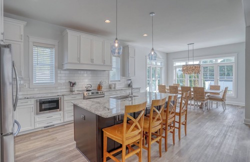 OVERVIEW: Stunning Single Family Home with Private Pool! Are you looking for the perfect vacation home for you and your family? Oyster Oasis has everything you need for a memorable and wonderful Rehoboth Beach vacation. This home is not only spacious but also well-equipped with all the comforts of home. Recently constructed, this custom home was intentionally designed with large open indoor and outdoor living areas for the perfect family beach vacation. Offering seven bedrooms (six primary suites), six bathrooms, and a powder room, this home will sleep fourteen people in comfort. Inside, you'll find a bright, airy space flooded with natural light and featuring modern, stylish furnishings.The group's chef will be right at home in the spacious, open kitchen, with a full suite of stainless steel appliances, a standalone island, and plenty of countertop space and cabinetry. Grab meals together at the window-front dining table; set the kids up with snacks at the island barstools; host family cookouts on the gas grill outside; then dine alfresco next to the pool. The crown jewel, a sprawling screened porch overlooking the private pool with a TV, promises ultimate relaxation with beautifully appointed seating areas. Enjoy the large yard for a friendly family game night of cornhole. More outdoor space on the front porch - both are perfect spaces for sipping sweet tea or your beverage of choice. The lower level offers an additional family room with a pool table, foosball, two bedrooms, and a hall bathroom, which each bedroom can access. The second floor offers four primary suites with ensuites, and the main level offers a primary bedroom with king bed. Each room was designed to provide comfort and space. The Oyster Oasis will become part of your family's most exciting traditions. After a hot day on the wide, sandy beach, dip in the private pool. Splash and play as the days turn into cool, sweet evenings. Book today for a wonderful family beach vacation! This home is available all year for friend groups, corporate retreats, families, and golfers, among others.