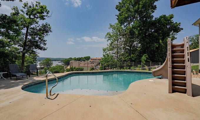 Private pool. It is an excellent area for boat rental, hiking, and enjoying all the great restaurants. The pool has a water slide, a patio area with a corn toss game, pool chairs, and a relaxing Lake view.