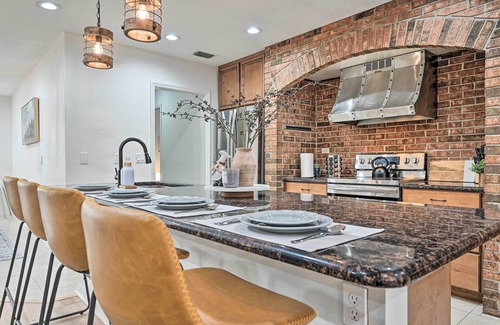 Highlighted by its stunning design and ample amenities, this elegant vacation rental in Brandon, Florida, is perfect for large groups to experience the best of the Tampa Bay area in style. This spacious 6-bedroom, 4-bath home features a well-appointed outdoor living area with a pool, hot tub, gas grill, and more. After a day of exploring or lounging in the sun, enjoy an al fresco dinner and s’mores by the fire pit before you retire inside for a game of pool or a movie on the Smart TV.