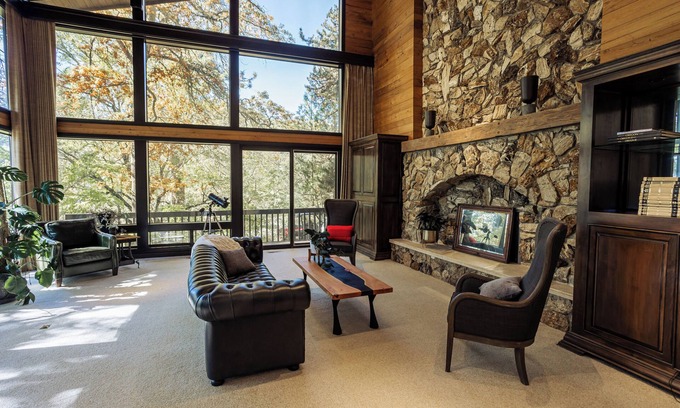 Nestled within 160 acres of serene private forest and picturesque pastures adjoining pristine federal woodlands, our beautiful lodge-style home offers a luxurious yet inviting bed-and-breakfast experience. Immerse yourself in lush gardens, a tranquil pond with waterfall, and stunning mountain views of the Rogue River Valley.