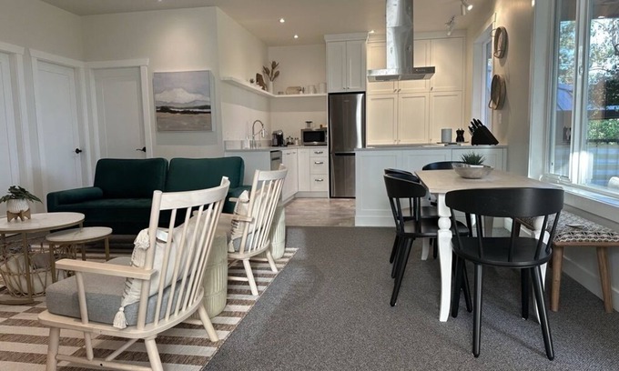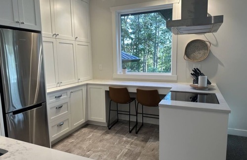 Located in Maple Bay within walking distance of the beach, tennis/pickleball courts, and local pub. You will sleep restfully in the king-size bed with down bedding; there is a second bedroom with two twin beds for those travelling with family or friends, and a pull out foam floor mattress for a fifth guest. Both rooms have light-filtering privacy blinds and black out curtains.