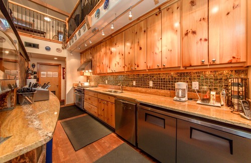 When entering the Main Lodge you’ll be inspired by the soaring 40 ft wall of windows and open floor plan that's ideal for entertaining large groups. The functional kitchen features slab granite counters, stainless appliances and a 6 burner gas cook top. In the great room the walls are lined with granite counters, ideal for serving lines or additional indoor eating space. The centerpiece of the Lodge is the wood burning, stone fireplace and comfortable couches for telling stories late into the evening. There’s also an over-sized dining table and beverage bar. Upstairs in the Lodge you’ll be greeted by a TV Lounge, additional dining/game table, kid’s game table and an office for those of you that can’t leave work behind! The cabin is equipped with 8MB Wireless Internet to make it a convenient venue for corporate retreats and conferences.