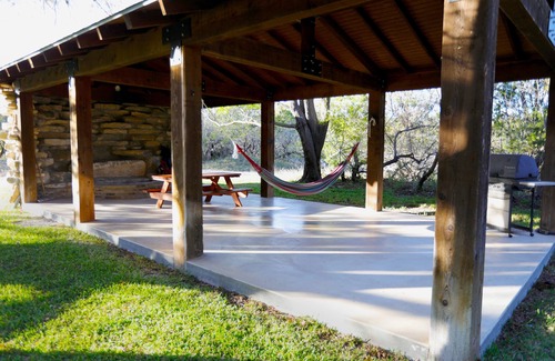 "Close to Kerrville, Hunt, Fredericksburg, your new cabin onTexas Scenic Rd, Hwy 39 provides a charming and comfortable stay. Your cabin has our private 400+ ft of amazing Guadalupe River frontage for swimming and kayaking. The cabin sleeps two in the bedroom with a double lazyboy couch in the living room. It has a full kitchen with coffee maker, coffee and WiFi. The beautiful One-of-Kind river frontage has a pavilion with hammocks, fire pit and patio with a fire pit perfect for party."