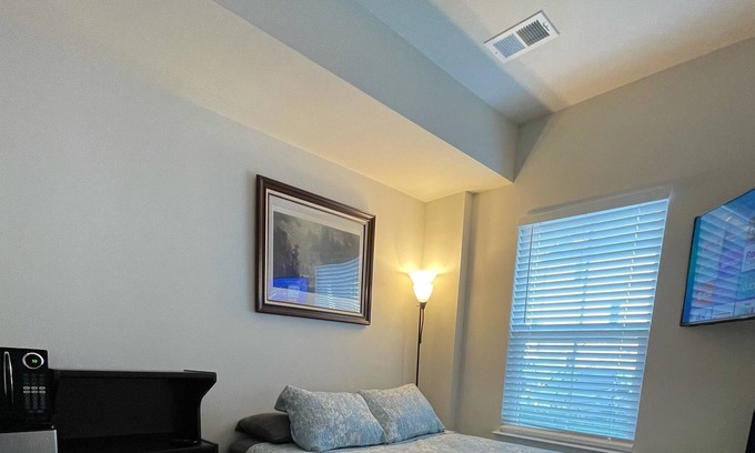 You will have a dedicated parking spot for 1 car in a private town home community. Respectfully request that guests do not spoke inside or outside of property. Be advised we do have a small hypo-allergenic, non-shedding 10 lb dog that remains upstairs and barks when you arrive. He calms down after few minutes once he realizes that you are a guest in our home.