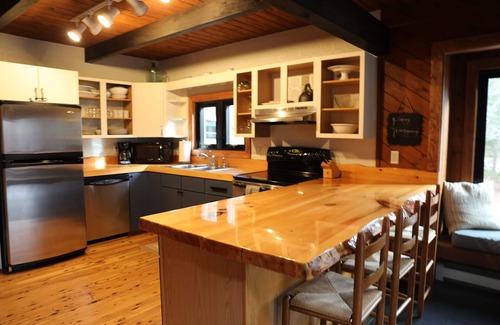 This rustic cozy pet-friendly home is located in the North Conway, NH area. It is a three-bedroom with two full baths. A large open kitchen leads to an open dining and living room area with an open loft to the upstairs hallway. Large deck with grill and outside fire pit. Fully applianced, cable tv, Apple TV, Wi-Fi, linens, and towels provided. Gas stove fireplace for a perfectly cool night.