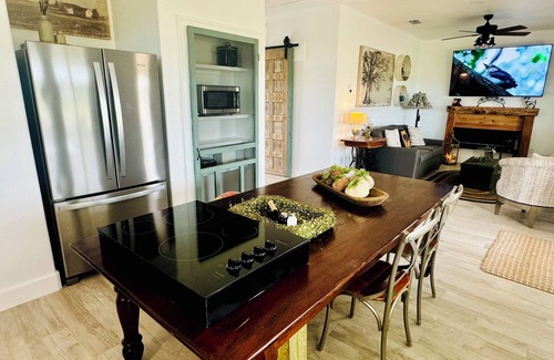 This cozy, private guesthouse, on a working horse ranch offers a peaceful, spa-like retreat near Granbury and Fort Worth. The property includes spacious porches with views of pastures, horses, and ponds, creating a serene atmosphere for relaxation. It’s also pet-friendly and ideal for those looking to unwind in a tranquil setting while staying close to local attractions. The cottage is perfect for nature lovers, providing both comfort and a ranch experience. This cottage is brand new and offers all up to date amenities. Relax and enjoy a great getaway visit to the Pump House.