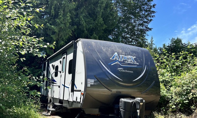 Beautiful 2018 camper with 1 queen bed in bedroom and 1 bathroom. Full size bunk beds in rear of rv. Has a full kitchen with gas stove, microwave and fridge. This camper is in a private setting on my property with a parking space in front of the camper. Very quiet small 3 house neighborhood, my home is on 5 acres. Utilities included (electric, wifi, water and garbage). First 2 tanks of propane provided for long term stays. Located within 10 minutes of Monroe and the antique capitol of the PNW, Snohomish. Close to the Eastside (Woodinville, Bellevue, Redmond all within 35 minute drive). Feels remote but has easy access to everything you need.