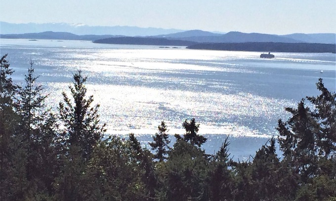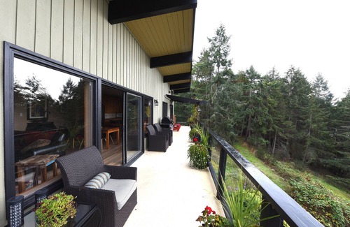 Our south facing 60 foot balcony is sun-drenched from sunrise to sunset and offers breath-taking ocean views of the Gulf Islands and snow-capped Olympic Mountains. You can spend the day with a good book, or just watch the tidal ocean currents, the passage of sailboats and ferries, and the ever-changing hues of the wind on the water.