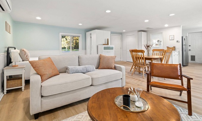 Step into Evergreen Escape Studio by Gather, where nature’s tranquility and modern luxury coalesce to craft a captivating retreat. Tucked away amidst Bellingham's lush landscape, this private studio offers a serene sanctuary, blending harmoniously with its 7-acre surroundings. Perfect for couples, adventurers, or remote workers, this recently remodeled hideaway is a dream you’ll want to delve into.