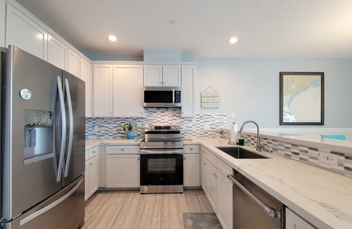 We are continually investing in upgrades to the condo, which include recent a/c and heating unit, recent stainless steel kitchen appliances, recent tile flooring throughout the condo and patio and, most recently new furniture and all-new custom quartz countertops, backsplashes and fixtures. You will appreciate its comfort and attention to detail. In our Guest Book you will find comments like "perfect", "heaven on earth", "pure bliss", "amazing" and "exceeded our expectations" written by some of our guests. About 50% of our guests are return guests and virtually all our guests tell us they hope to return in the future.