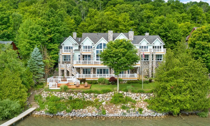 Torch Lake has been named one of the most beautiful lakes in the world, and few rental properties can allow you to enjoy it more than this one-of-a-kind home named “Noble Spirit.”