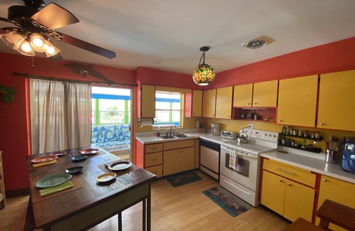 Tropical Paradise with a Private Pool! Short stroll to Beautiful beach! Ideal location for those who love the beach and want the comforts that a whole home with a private yard and pool provides. Set in a well-kept suburbia neighborhood just a few blocks away from some of the best surfing areas in Florida, you will enjoy all the modern conveniences in this charming, well-maintained 60's built home. It is easy to enjoy all the colors and art that bring the surfer life right in the door.
