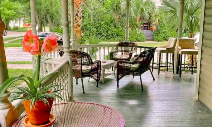 Reviews often mention how beautiful and cozy the home is. Its character makes you feel like you’ve stepped into a time capsule. Unlike most nearby rentals, each unit is spacious and won’t make you feel cramped. It’s also located in a beautiful neighborhood and some guests have enjoyed riding bikes through the quiet roads, enjoying the gorgeous architecture of the houses here. And just a short walk to Downtown Gainesville!