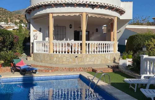 Villa Paula is a 2 bedroomed villa with a private pool. It has 2 bathrooms, a kitchen and an open plan lounge/dining room with french doors leading to a large covered terrace. There is also a roof terrace to enjoy the beautiful scenery. The Villa is equipped with everything you need to have a lovely relaxing holiday, or an adventure packed one. We are within walking distance of the entire village. Only 45 minutes from Malaga airport and 15 minutes from the beach at Torre De Mar.