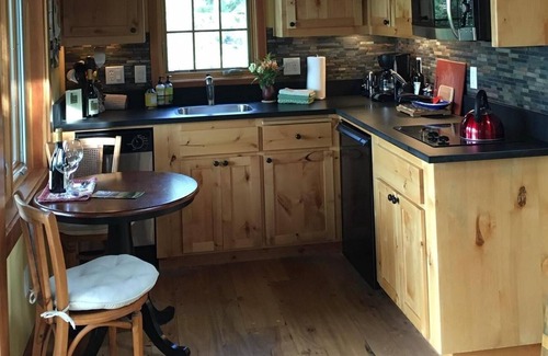 The kitchen is fully equipped with a two burner cooktop, micro/convection oven and dishwasher. French doors open to a very private deck where you can relax in Adirondack chairs after a day spent touring the surrounding area. Literally hundreds of wineries are available for touring and downtown Portland is an easy hour drive away as is the Pacific Ocean.