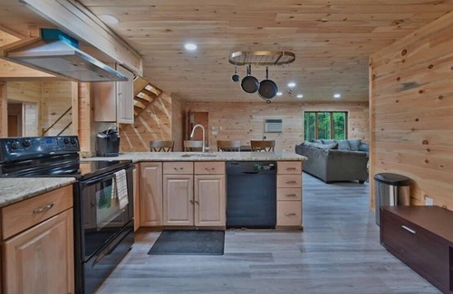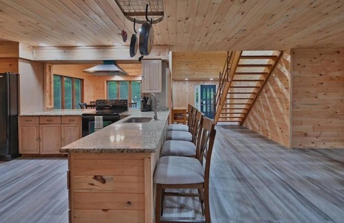 Newly renovated cabin boasts over 4300 Sq Ft. of living space located on 4 acres of land! Perfect location for gatherings looking for privacy and seclusion. High Country has 5 Bedrooms, 3 and a half baths, a bar room which consists of a wet bar, pool table, shuffleboard table and a 50" Smart TV, located on the main floor. There is also a dinning room, an eat in kitchen, and family room located on the main floor.