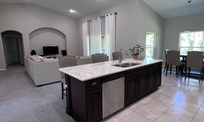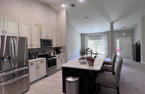 Private Waterfront Beautiful 4-bedroom Home is located in Palm Coast. Private Waterfront Beautiful 4-bedroom Home provides accommodation, featuring Parking, Sports/Activities, Wellness Facilities, among other amenities. This House features Parking, Sports/Activities, Wellness Facilities, to make your stay a comfortable one.