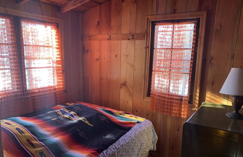Three cozy bedrooms, featuring a queen, double, and bunk bed. While the wooden walls offer privacy, please note that they do not extend all the way to the ceiling, and bedroom "doors" are currently adorned with curtains (wooden doors will be installed in the near future).