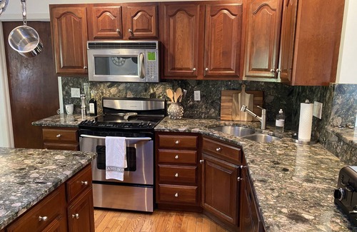Guests have access to the entire home and property, except an owner's storage room and closets. Garage parking is not available