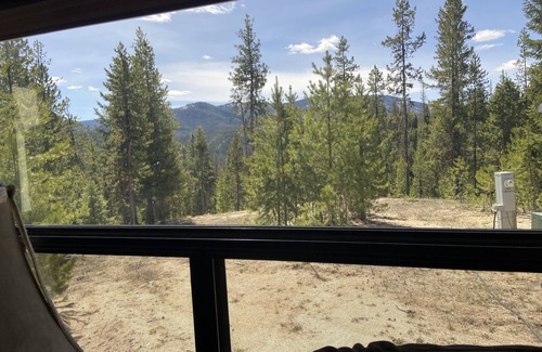 5th wheel camper in Private Camp site near Lolo Hot Springs, Mountain View’s, Hot Springs Access, located just 7 miles from Lolo Pass, near by Bar & Restaurant yet still feels remote and peaceful and quiet! Surrounded by Lolo National Forest Outdoor Picnic table, lounge chairs, fire pit,
