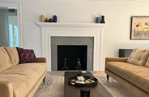 AVAILABLE JULY 1st, 2023. Newly-built, architect-designed New England farmhouse with English Country interior on 14 acres of beautiful and secluded woodlands and vernal pools on the East Branch of the Shepaug River. Located in the historic district of Milton, the house sleeps 14 and has a modern kitchen, a great room with a wood-burning fireplace, a private office, a finished basement-entertainment center, and a fully-equipped gym. French doors open out onto a private patio as well as a 50 foot heated, fenced in salt water pool. The house is surrounded by unspoiled natural woodlands, bordered by the trout-filled East Branch of the Shepaug River perfect for fishing. With year round entertainment, it's within a 10 minute drive of the historic Litchfield Green, 10 minutes from Mohawk Mountain ski area, 15 minutes from the endless hiking, biking, and kayaking options of the White Memorial Conservation Center or the serenity of the Ripley Waterfowl Conservancy, 20 minutes from the stylish shops of New Preston, 30 minutes to the famous Elephant Trunk flea market, and 45 minutes to world-class Norfolk Chamber music festival. Children will love the many farms in the area, including world famous Thorncrest and its high end chocolates and Arethusa Dairy farm and its fresh made, local ice cream. Advance reservations from any of the many nearby excellent restaurants can be furnished upon request.