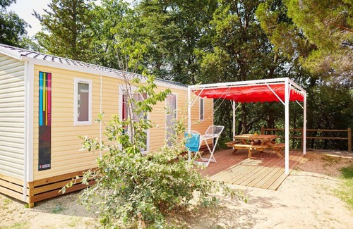 Indulge in a family-friendly escape overlooking the mountains of Albera Massif! Our modern mobile home is tucked away in a serene countryside area surrounded by lush forests, just 12 km from the beaches of Argelès-sur-Mer. Featuring an array of amenities, ranging from an aquatic park and beyond, our campsite promises varied activities for groups of all ages. For those craving local cuisine, fine restaurants are right next door!