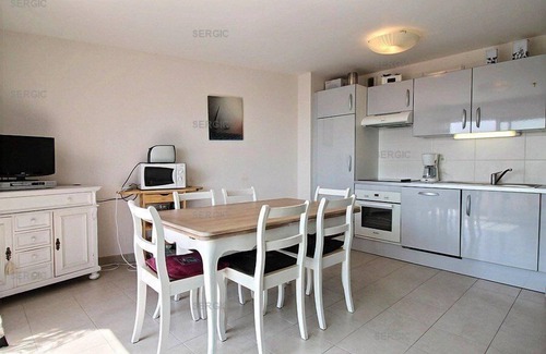 Beautiful apartment for 6 people offering a kitchen, living room, bedroom with a bed of 140, a bedroom with a bed of 160 and corner cabin with beds (90) bunk, a bathroom, separate toilet, a balcony Seaview,