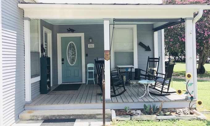 This spacious 2 bedroom/1 bathroom Main House with large covered front porch is perfect for relaxing with your favorite book or cup of coffee. Located on a quieter side street in downtown steps from all the activities.