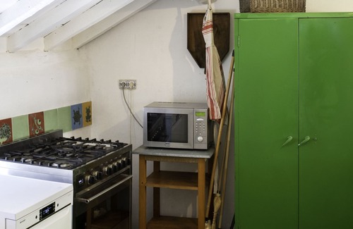 The kitchen is equipped with an oven, a stovetop, and a dishwasher, as well as a coffee maker, a microwave, and cookware. And there's access to laundry facilities, so you can even pack a bit lighter. Other amenities at this 4-bedroom, 1-bathroom rental include a fireplace and bed sheets.
