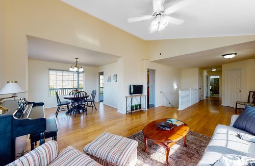 Upon entering, you will discover a sunny living area that invites you to spread out comfortably with your loved ones and relax. Stream favorite shows or movies on the smart TV, read any of the provided books, or start planning your adventures along with your guests. When mealtime comes, surprise everyone with a delicious homemade meal prepared in the well-appointed kitchen, complete with all stainless steel appliances. Dine indoors at the gorgeous dining table off of the kitchen or enjoy your delicious feast outdoors on the extensive deck. This level also enjoys two bedrooms. The primary suite has its own en suite bathroom and access to the deck. The lower level offers a secluded family room with a comfy sofa, a microwave, a mini-fridge, and a toaster; one bedroom; and a dedicated laundry room with a washer/dryer.