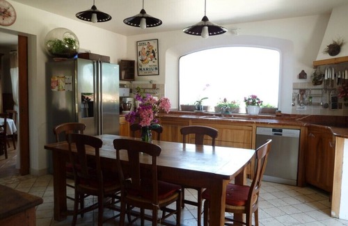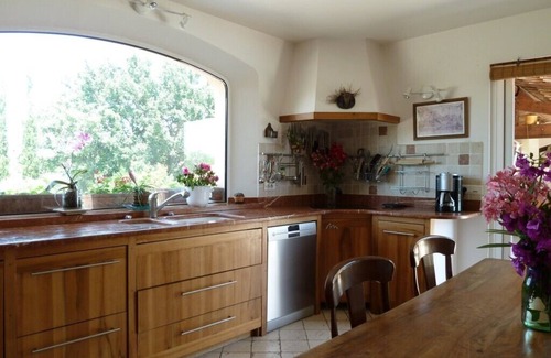 Less than 18 km from Aix-en-Provence and a score of the Luberon and the Sainte Victoire, this Provencal farmhouse of 240 m2 on 4000 m2 of garden, is located in a zone classified "natural". On the hillside, the farmhouse has a dominant view of the Lubéron Massif and Sainte Victoire. The terraces make it possible to choose the shade, the partial shade under the oaks or pines or the full sun around the heated swimming pool (June-September). For your relaxation, hammocks and dozens of sunbaths will be at your disposal. Guests can enjoy the traditional pizza oven and barbecue during warm summer evenings. The pool, a treadmill, two ping-pong tables, a petanque, a swing, a cabin and a trampoline will allow everyone to enjoy their stay. The furniture is of quality and character, the furniture is essentially composed of walnut antiques.