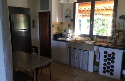In the town of Lioux, 10 km from Gordes and 7 km from Roussillon, Provencal house full of charm, very sunny with magnificent views of the cliff of the Madeleine.