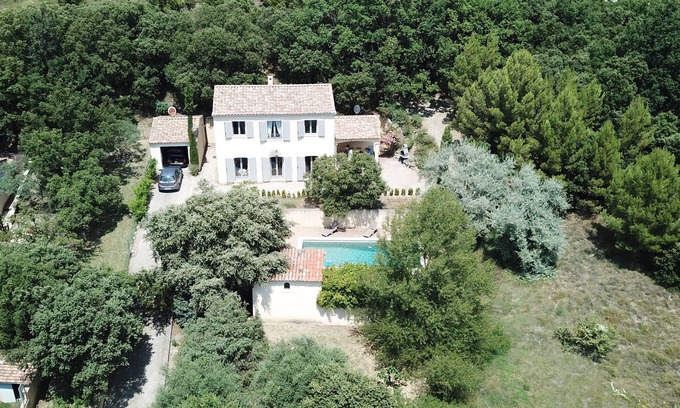 ' Ideally located, in the immediate proximity of the village of Rustrel, facing the Colorado Provençal and the Luberon, backed by the Monts de Vaucluse, our Mas provençal with private swimming pool can accommodate up to 7 people (adapted rates) very comfortably (140 m²): swimming pool, air conditioning throughout the house, garage.