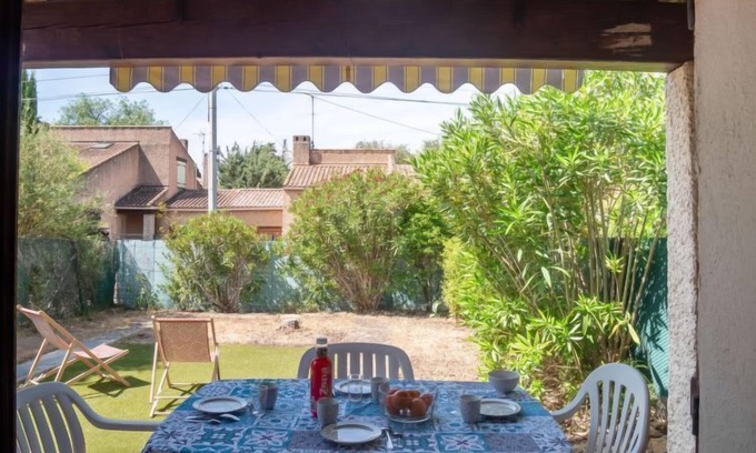 3-room terraced house 63 m2, on the ground floor. Comfortable and beautiful furnishings: living/dining room with TV (flat screen). Exit to the terrace, to the patio. 1 room with 1 french bed (140 cm, length 200 cm). Exit to the terrace. 1 room with 2 beds (90 cm, length 190 cm). Kitchen (mini-oven, 4 ceramic glass hob hotplates, toaster, microwave, freezer, electric coffee machine, Capsules for coffee machine (Nespresso) extra). Shower, sep. WC. Electric heating. Terrace 15 m2, south-west facing position, patio 25 m2, south-west facing position. Terrace furniture, electric barbecue (2). Facilities: washing machine. Internet (WiFi, extra). Please note: TV only FR. Smoke alarm. Offer by a private individual according to Art. 155, IV of CGI. 83112000746PI