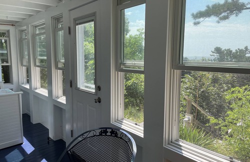 This hilltop escape provides panoramic views of Provincetown Bay and the coast from the Long Point Lighthouse to Wellfleet . There are water views from just about every room and the side yard.