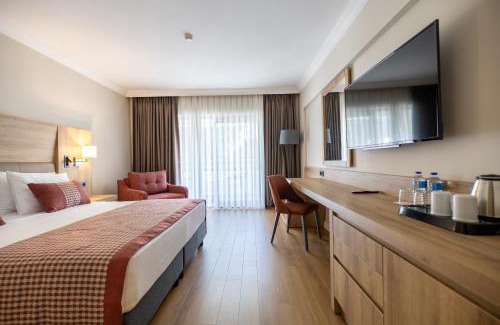 This 168 Bedrooms Hotel is suitable for tourists and travelers. It has several amenities that would guarantee your comfort. These amenities include: Air Conditioner, Pool, Oceanfront, and several others. This is a 4 star rated property . Coming to Kuşadası and needing a place to stay? Be it for work or for leisure, consider staying at this Hotel for your next visit, you will surely love it.