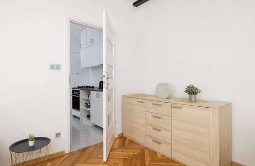 The apartment on Prusa Street in Cracow is a great place to relax, offering quick check-in and check-out for convenience from the first moments of your stay. Attractive location in a quiet area, not far from the Old Town allows you to enjoy peace and greenery, without giving up proximity to city attractions. The property is located right next to Krakow's Blonie Park (270 m) and less than 2 km from the Wawel Royal Castle. The 41 sqm apartment is designed for 4 guests - a perfect choice for families and friends alike. Multimedia in the apartment includes Internet TV and free Wi-Fi. A fully equipped kitchenette allows you to prepare home-cooked meals, while toiletries, towels and linens provide the comfort of a hotel standard. A VAT invoice is available upon request.