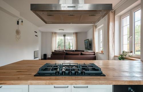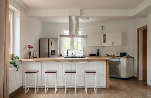 Przystań Jeziorany - willa nad jeziorem - Warmia i Mazury is a recently renovated villa in Jeziorany where guests can make the most of the private beach area and water sports. This beachfront property offers access to a balcony, free private parking, and free Wifi. The property offers bike rental and features a garden and outdoor fireplace. Providing a terrace and lake views, the spacious villa includes 9 bedrooms, a living room, flat-screen TV, an equipped kitchen, and 12 bathrooms with a hot tub and a shower. Guests can take in the views of the garden from the patio, which also has outdoor furniture. The villa offers bed linen, towels, and laundry service. A selection of options including warm dishes, juice, and cheese are served for the buffet breakfast. Guests can relax in the on-site lounge, while packed lunches are also available upon request. Guests at the villa will be able to enjoy activities in and around Jeziorany, like canoeing, walking tours, and bike tours. Outdoor play equipment is also available for guests at Przystań Jeziorany - willa nad jeziorem - Warmia i Mazury. Święta Lipka Sanctuary is 21 miles from the accommodation, while Castle of Lidzbark Warmiński is 18 miles from the property. Olsztyn-Mazury Airport is 47 miles away, and the property offers a paid airport shuttle service.
