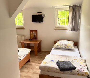Featuring a garden, Przystań nad jeziorem Raduń provides accommodations in Wałcz. This beachfront property offers access to a terrace. Private parking can be arranged at an extra charge. Towels and bed linen are available in the farm stay. The accommodation is non-smoking. Breakfast at the property includes a spread of buffet and continental dishes, and pancakes, cheese, and fruit. There is a coffee shop and bar. For guests with children, the farm stay features outdoor play equipment. Cycling, fishing, and hiking are possible within the area, and Przystań nad jeziorem Raduń offers a private beach area. Poznań-Ławica Henryk Wieniawski Airport is 75 miles from the property.