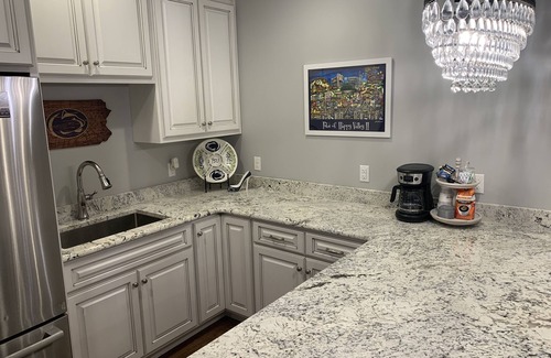 Welcome to the Penn State Unrivaled stay. We are located 10 minutes from the stadium on the West side of State College. Great night stay for 4 guests. Brand new kitchen, Queen bedroom (Bed 1), couch, Sofa Queen Sleeper (Bed 2), bathroom. Basement of an existing home. Family will be staying upstairs while you stay.