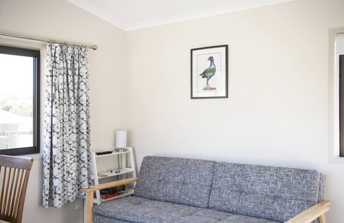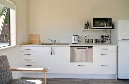 With open plan kitchenette, dining and lounge that opens onto a small patio for summer BBQs, Pukeko Lodge is a fully wheelchair accessible year round home-away-from-home with an air-conditioner/heat pump and is double glazed and fully insulated. Featuring parking space for your vehicle or a large campervan if you need a break from the road.
