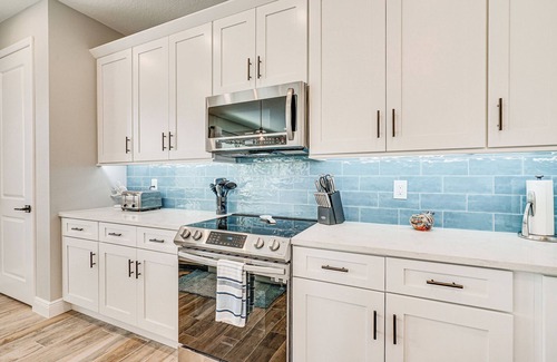 KITCHEN: Dishwasher, refrigerator, stove/oven, microwave, drip coffee maker, Keurig coffee maker, starter coffee, toaster, air fryer, cooking basics, dishware & flatware, trash bags & paper towels, snacks