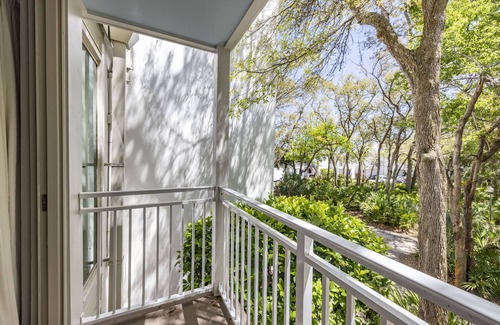 Our two-bedroom, one-bath condo has been thoughtfully furnished to provide maximum flexibility and comfort for couples, friends, or families looking to enjoy all the nature and amenities the island has to offer. The main living space is on the ground level and features a full kitchen and open floor plan that takes advantage of views of the incredible greenspace on the property. It's the perfect area to walk right out the back door and onto the pathways for a quick walk with the pups. Our dogs absolutely love it!